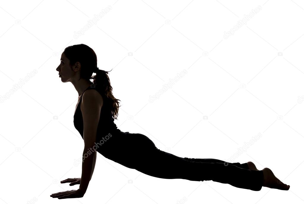 Woman In Upward Facing Dog Pose In Yoga In Silhouette Stock Photo C Summerseason 42153487
